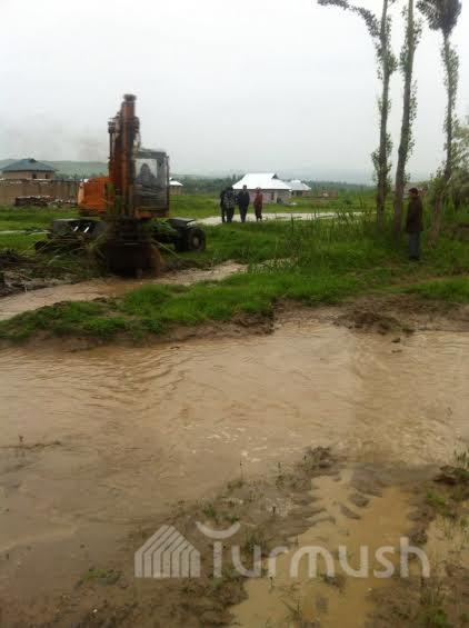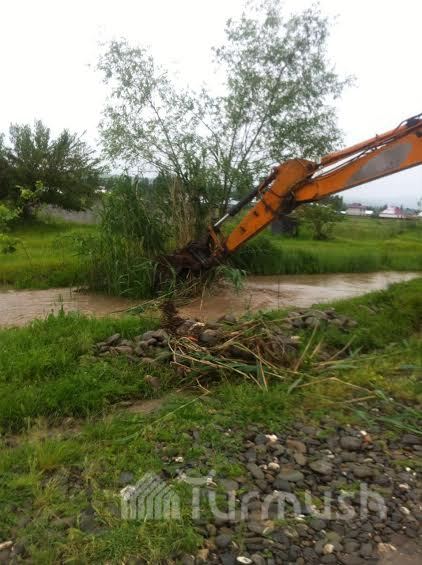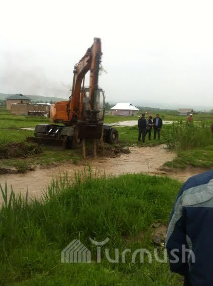 Өзгөндүн суу каптаган көчөлөрү тазаланып жатат (фото)
