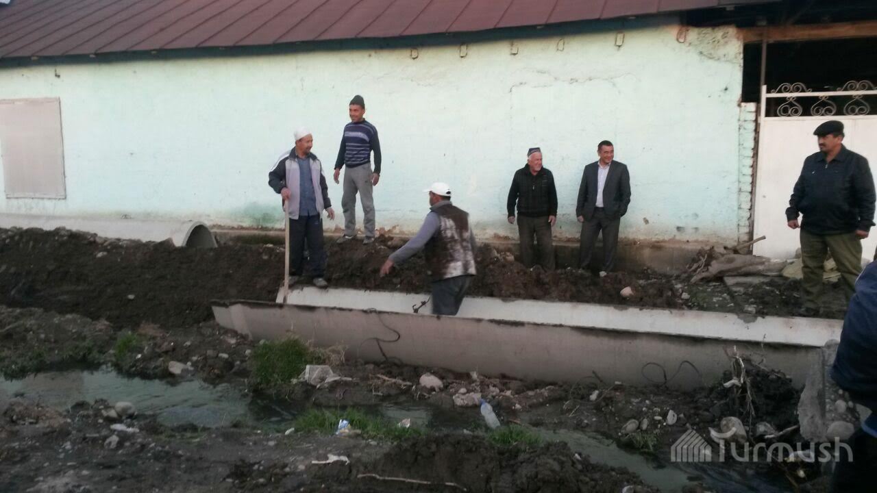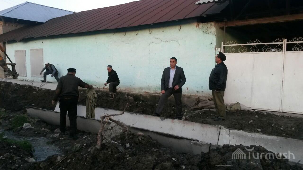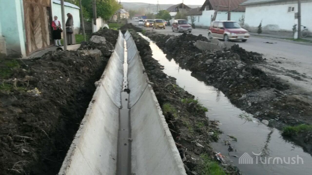 В кварталах города Узген в целях предотвращения подтопления жилых домов устанавливаются лотки (фото)